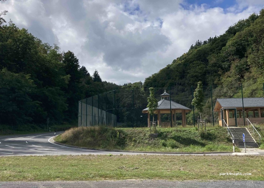 Der Parkplatz liegt an einer Kreuzung, aber trotzdem ist es ein toller Parkplatz. 6–8 Stellplätze sind vorhanden. Gegenüber wurde eine Grillhütte zum Vermieten neu gebaut. Wenn dort eine Party stattfindet, könnte es laut werden. Wir waren zufrieden, um dem Trubel in Cochem kostenlos zu entkommen.