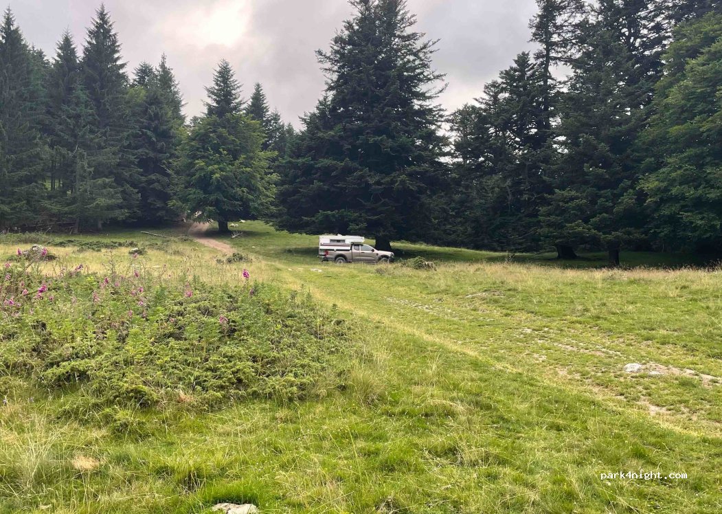 There are signs saying "Camping prohibited" everywhere along the D113. Access here via a legal forest path, a very beautiful, quiet meadow with a stream in a forest clearing, several flat pitches. ATTENTION: 4x4 absolutely necessary. Several water crossings, deep ditches, steep places