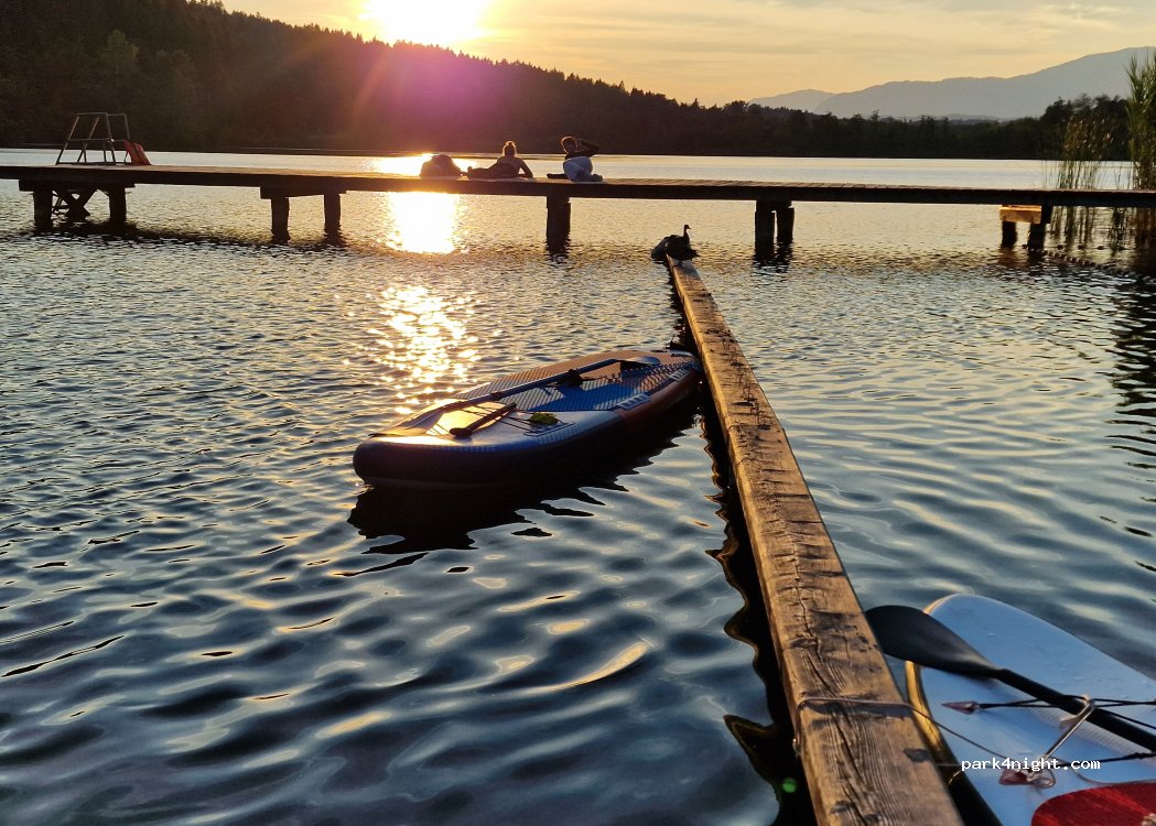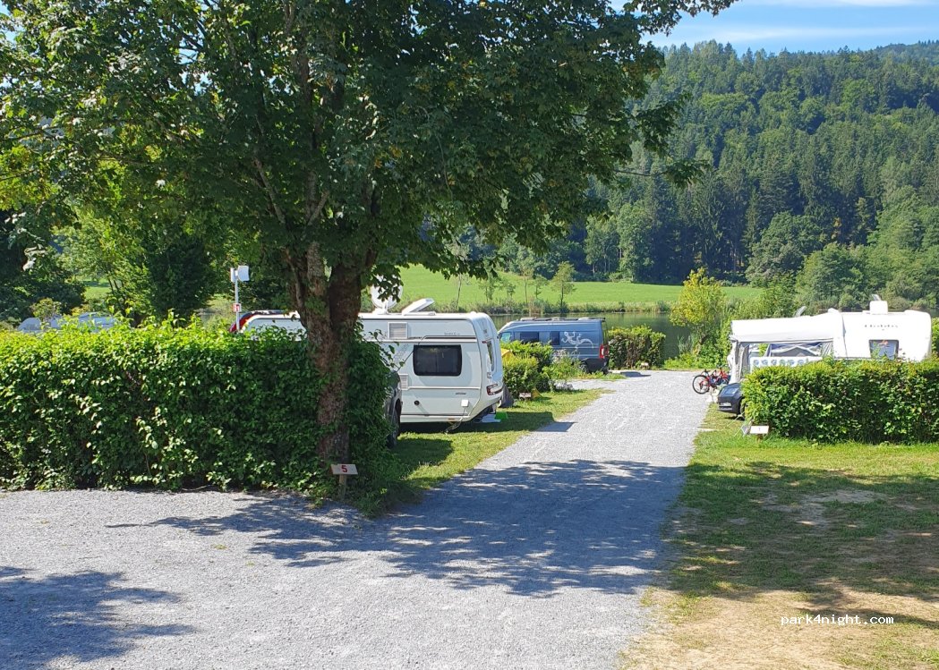Camping très propre. A l' écart (25 min de Klagenfurt) et a côté d un petit lac avec pontons pour accéder a l eau. Sanitaires récents, régulièrement nettoyés et propres. Personnel très sympathique. les emplacements sont délimités et très corrects en superficie. A noter tout de même, les accès sont étroits (manœuvre parfaois difficile s il y a du monde) et il y a peu d ombre. Recommandation+j