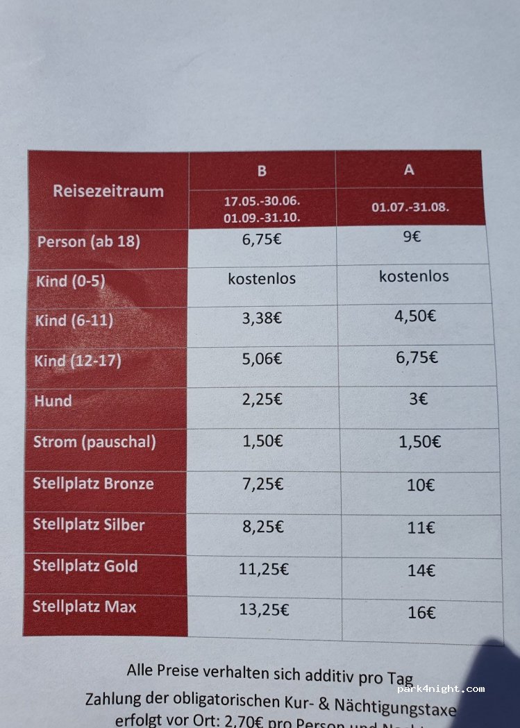 War im September dort und bekam ohne Anmeldung einen Stellplatz direkt am See (Gold Stellplatz) zum Preis vom Bronze Stellplatz. Wie gesagt eher enger für große Wohnmobile. Nettes Personal und gepflegte Sanitäranlagen mit kostenloser Dusche. Wlan, Strom für €2,50, Minigolfplatz, SUP zum Ausleihen, Tischtennis, Billiard... Preis für 1 Person mit Camper und Strom: 18€