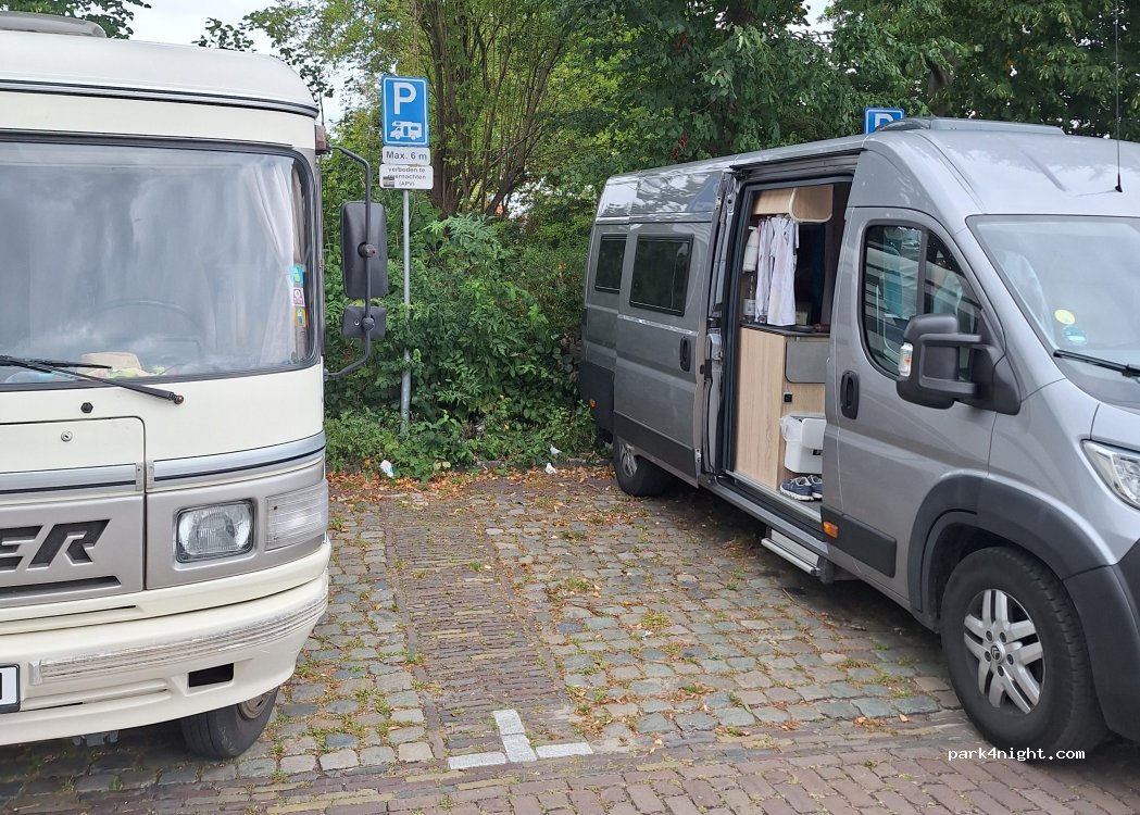 6 camperplaatsen, verboden overnachten 3€ per uur in de winter... wandelafstand centrum max 6m waar je eigenlijk meter uitsteekt