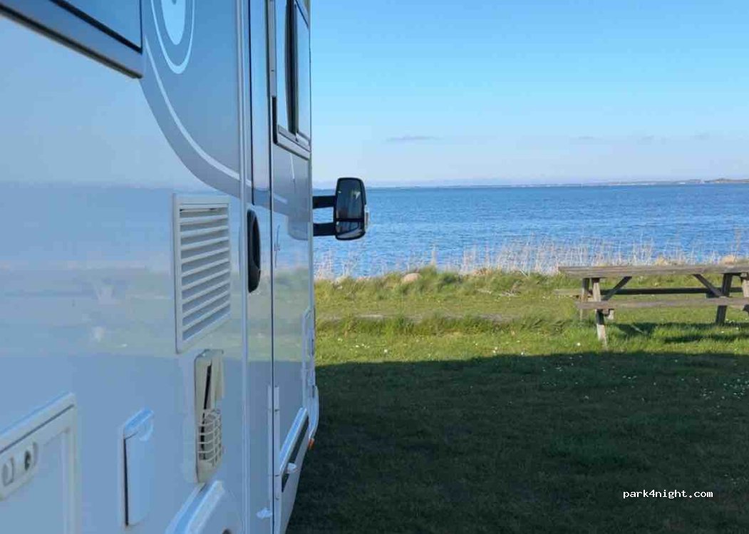Nice place to stay for a night. Street is a bit loud but the view is very good. Sanitaries are ok. Camper parking is 130 DDK, power 20 DDK and shower 10 DDK. Toilets are free, you get a code on the receipt for the bathroom. Washing machine and tumbler Are also available for 30 DDK each.
