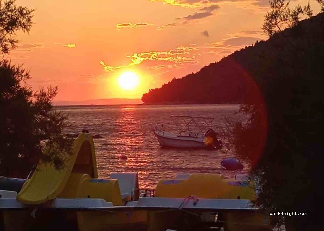Za nás nejlepší kemp v celém Chorvatsku. Poloprázdná pláž, personál úžasný, nádherné západy. Jediné mínus je sprcha, která je veřejně umístěná na pláži. Na opláchnutí stačí, ale člověk co žije v autě se potřebuje umýt pořádně a bez plavek- to tu není možné. Cena 15€ za noc, s přípojkou 20€. Sprchu neplatíte, jen si řeknete o žetony. Záchody čisté, umývárna také-jen neteče teplá voda.