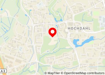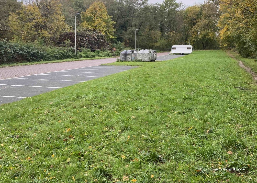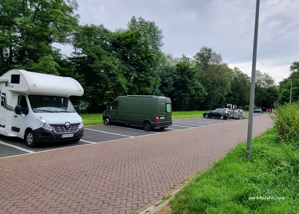 Parking public sur un terrain de sport, situé au calme en lisière de forêt, boulangerie et commerces (Aldi, Edeka, Netto, etc.) accessibles à pied. Jonction d'autoroute (A46/A3) à environ 3 minutes.