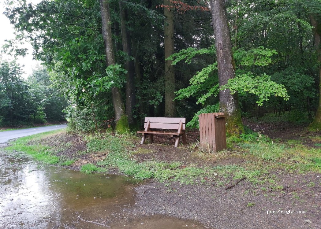 Parking de randonnée en forêt sur la route en direction de Mertzig. Idéal pour les randonnées jusqu'au Château de Turelbaach (30-40min). Banc et poubelle sur place.