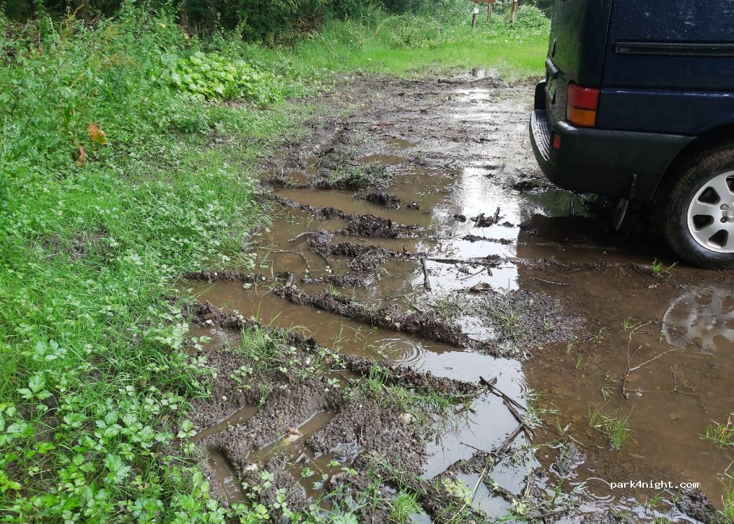 Bei Regen kann es sein dass man mit dem Auto im Schlamm stecken bleibt. (siehe letztes Bild)