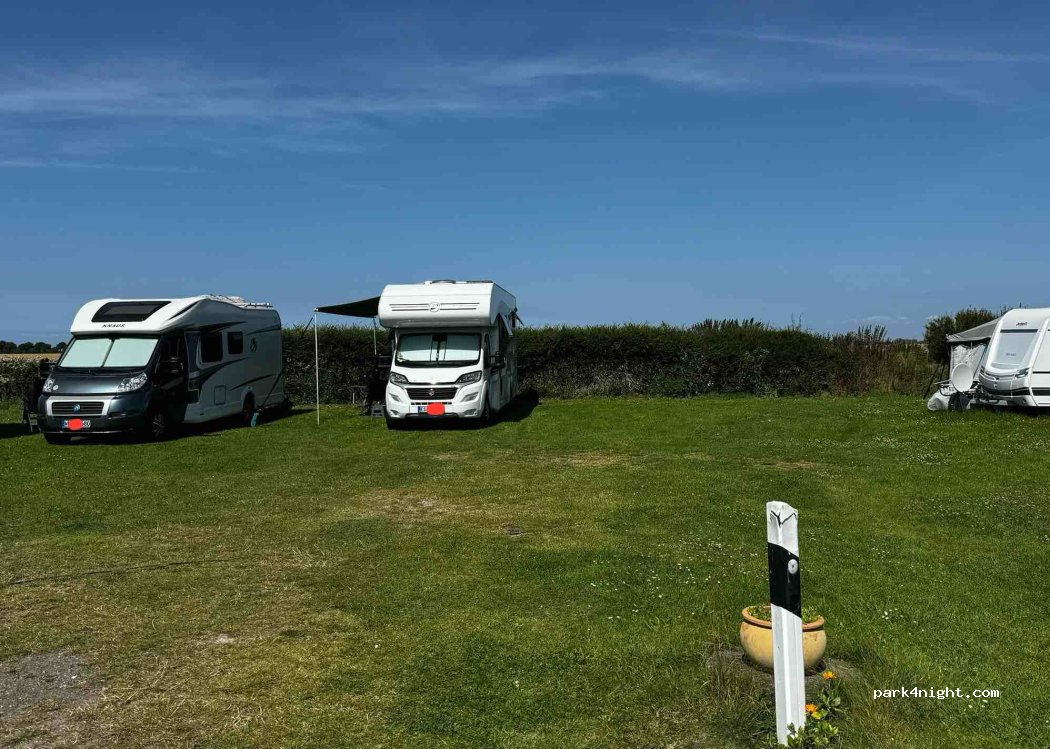 Gut für 1 Nacht um dann mit der Fähre nach Dänemark zu fahren. Duschen & Toilletten sind umsonst und der Dauercämper ist auch ganz nett. Waren 3 Womos Platz hat er für 10. ist OK.