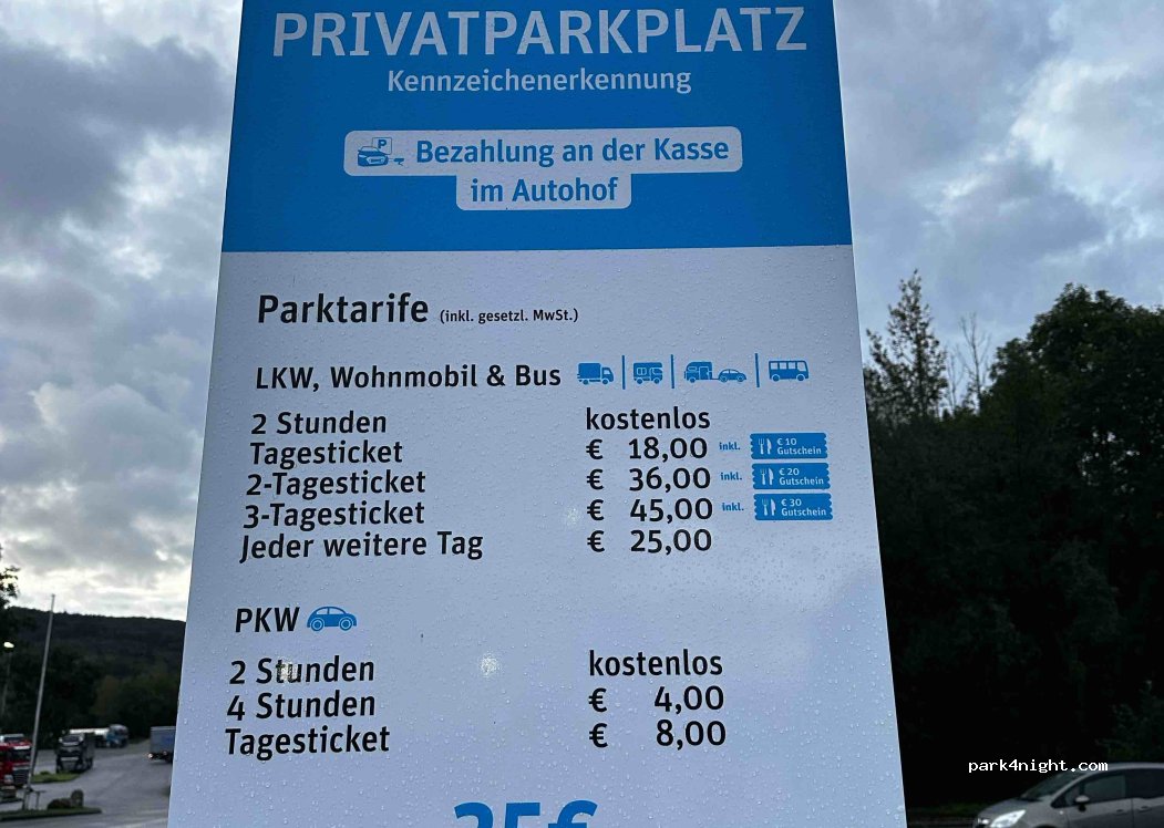 Autohof. Parken und Übernachten für Wohnmobile möglich.