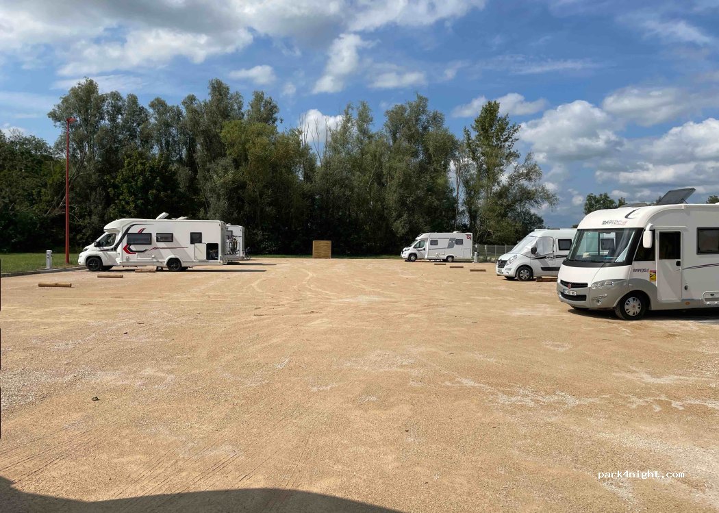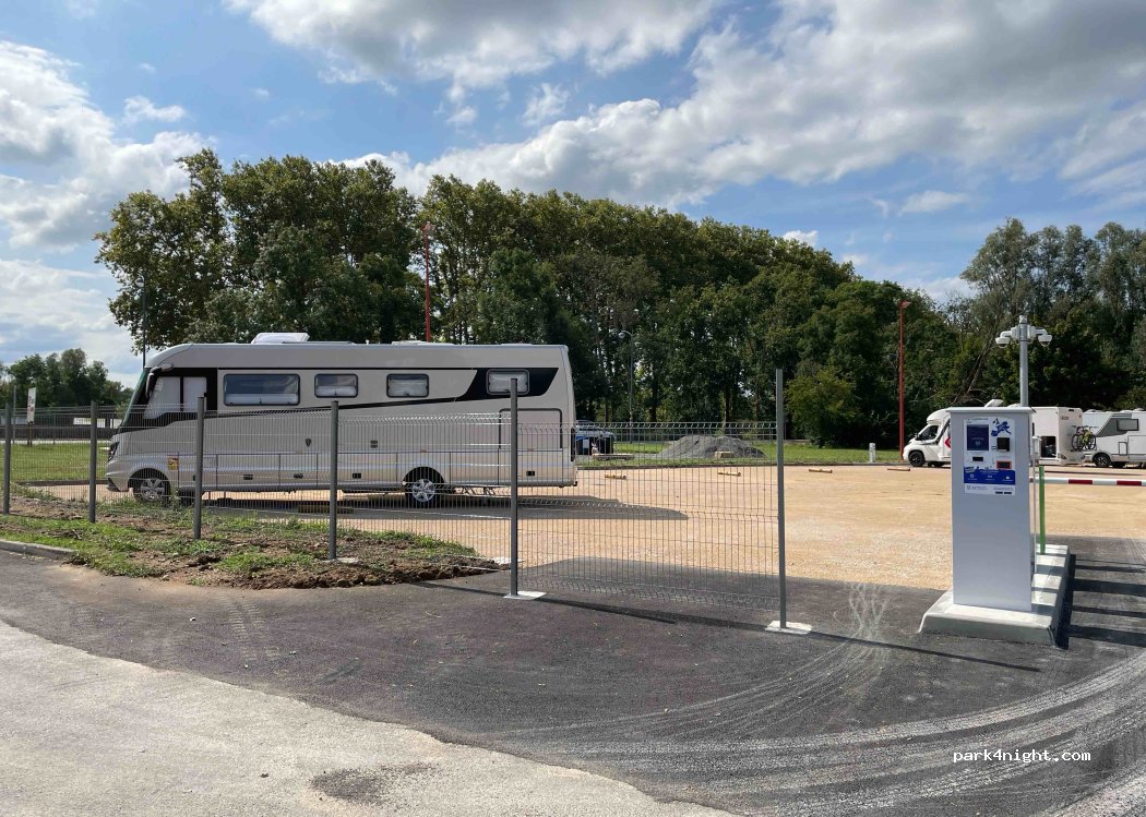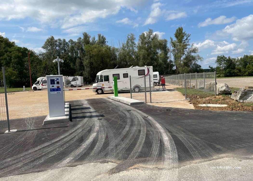 Beaucoup de passage sur la route jouxtant l'aire, calme le reste de la nuit. place spacieuse et plane, Poubelles, eau et électricité a disposition. Nécessite de souscrire une carte camping car park (5 euros) en plus des 14 € pour la nuit. Sans carte impossible de rentrer sauf que la borne n'en distribué pas (en panne). Mais service client très réactif par téléphone (si appel entre 7h et minuit).