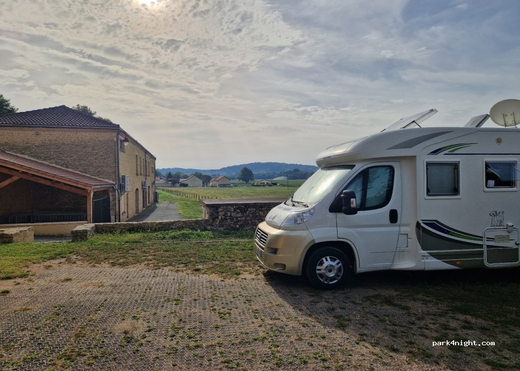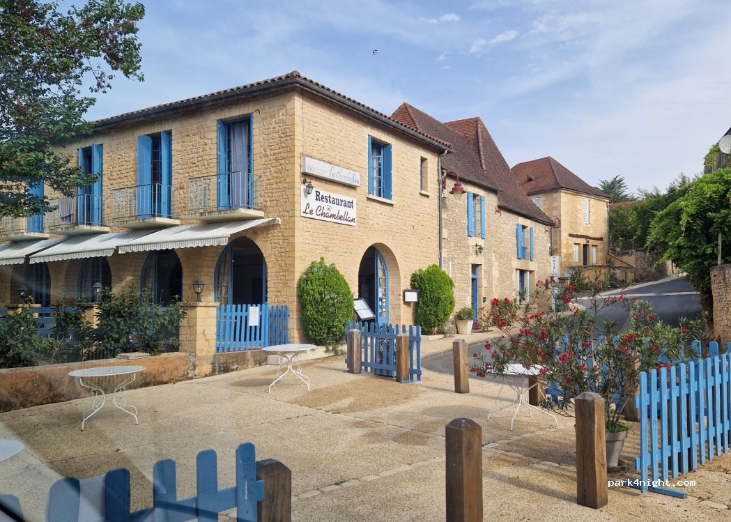 Juste à côté se trouve un petit restaurant et plus bas derrière la salle des fêtes se trouvent un robinet d'eau potable et des toilettes. Nuit calme