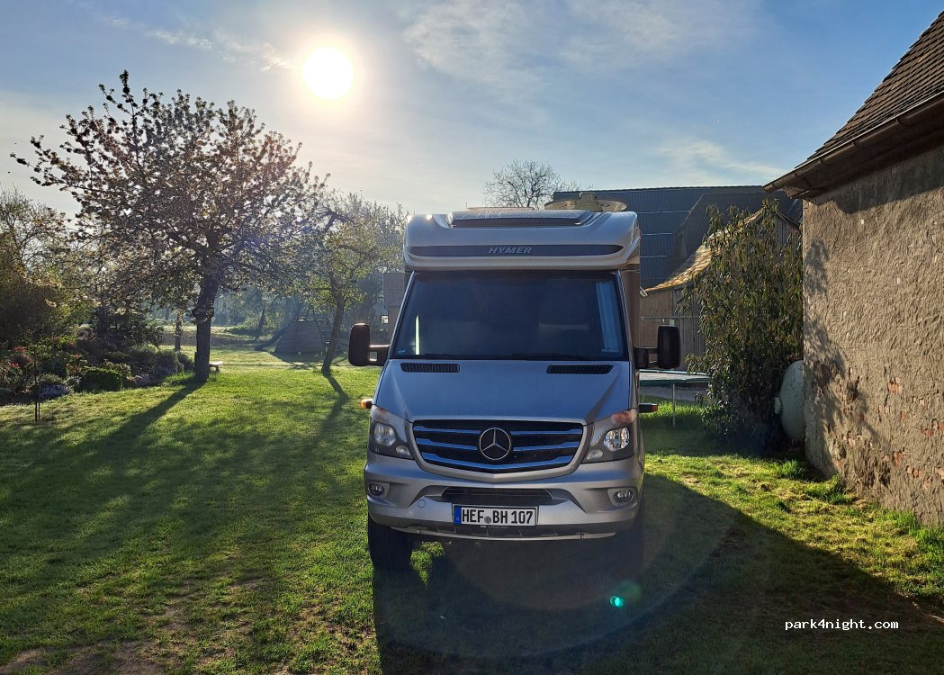 Hallo, we hebben een parkeerplaats in de tuin van ons "Gasthof zum Stern". Deze is onverhard, maar wel veilig. De parkeerplaats is voor één nacht en we stellen het op prijs als u in de herberg wilt dineren of ontbijten (€ 12 voor volwassenen, € 1 voor kinderen per jaar). U kunt gebruikmaken van de speeltoestellen in de tuin. Het toilet bevindt zich bij de receptie. Reserveren is niet nodig, aangezien we plaats bieden aan drie of vier campers. Contact: wlanprivat Wachtwoord: telekom2005