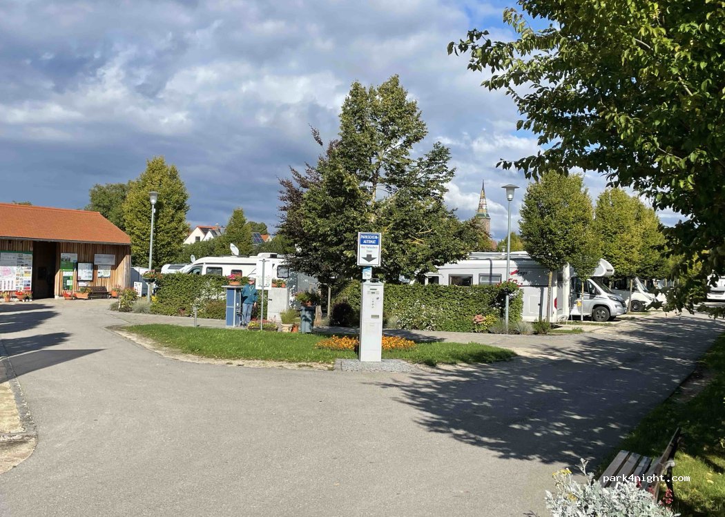 Am Ortsrand des Ortes gelegen, nur 300 m zum Bäcker und Metzger. Ein wirklich nettes Städle , daß man sich unbedingt ansehen sollte. Ein sauberer und gepflegter SP. Dusche und Toiletten sowie Waschmaschine und Trockner im Holzgebäude untergebracht. Tagsüber und nachts ruhig. Wir haben uns sehr sicher und wohl gefühlt. Danke an die Gemeinde für diesen Platz .