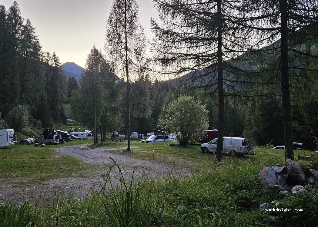 Sehr schönes Natur-Camp am Fuße des Umbrailpasses. Freie Platzwahl, der Wunschplatz kann auch außerhalb der Check-in Zeiten bezogen werden; die reservierten Plätze sind an der Rezeption angeschrieben. Kleiner Kiosk, cooles Publikum.