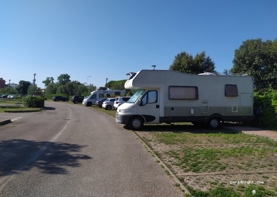 Grande parcheggio gratuito, di fianco ad un altro a pagamento. Luna park vicino ma intorno a mezzanotte chiude e abbiamo passato la notte tranquilli.