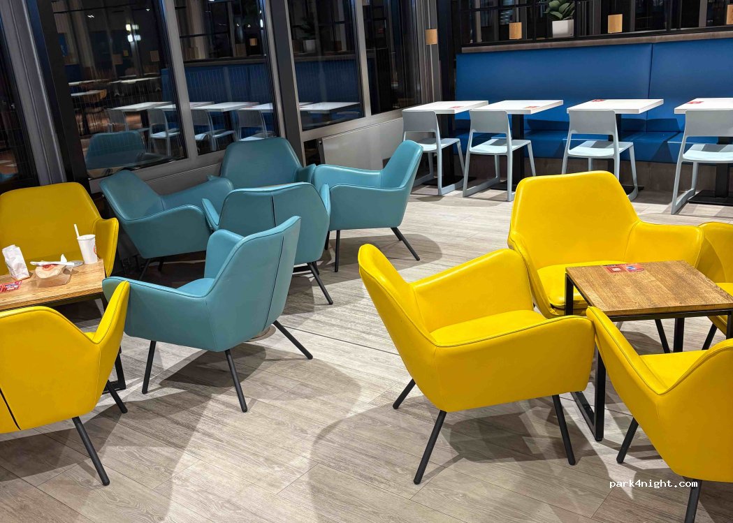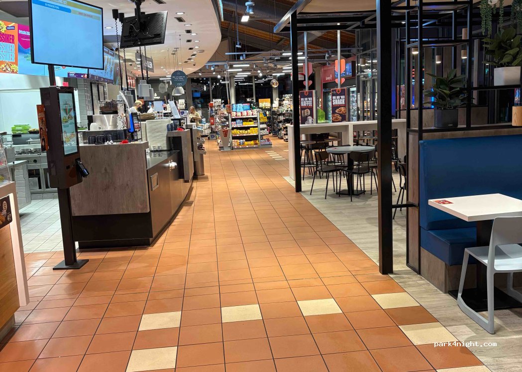 Nice rest area, clean, there is a BurgerKing, Restaurant, Coffee Fellows, Shop, comfortable seating area. My dog is allowed inside. Friendly staff gave him water and some free chicken nuggets.