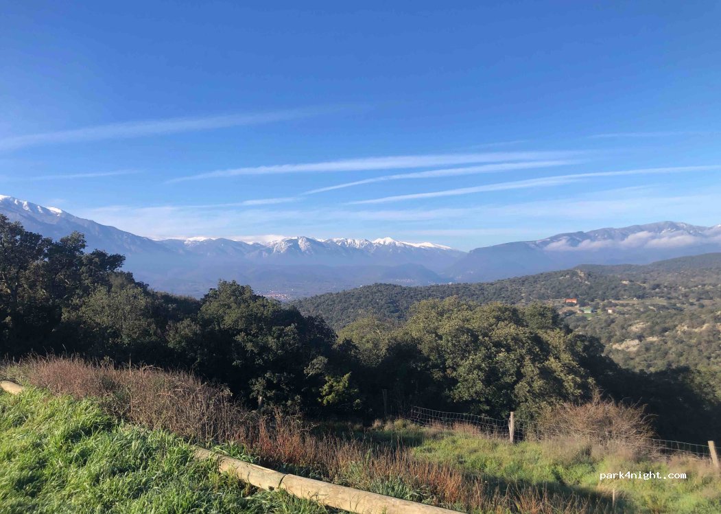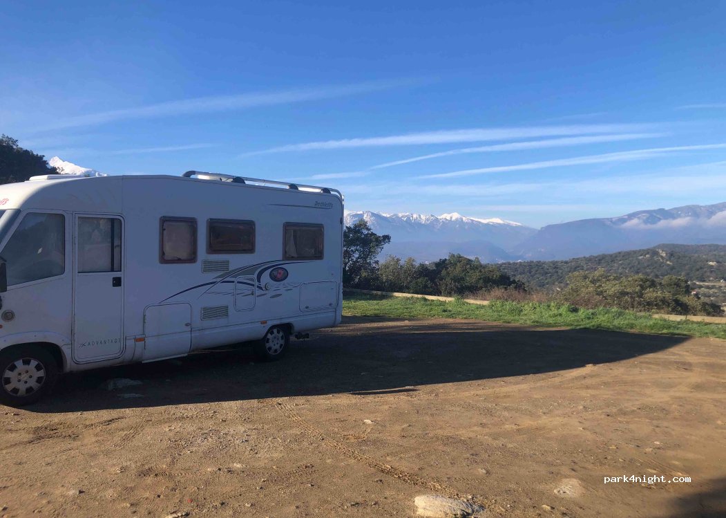 Endroit très calme et en hauteur, avec vue sur le Canigou. Le parking est grand, plutôt plat. L’endroit est parfait pour observer les étoiles et la voie lactée !!! Proche d’une route mais avec peu de passage