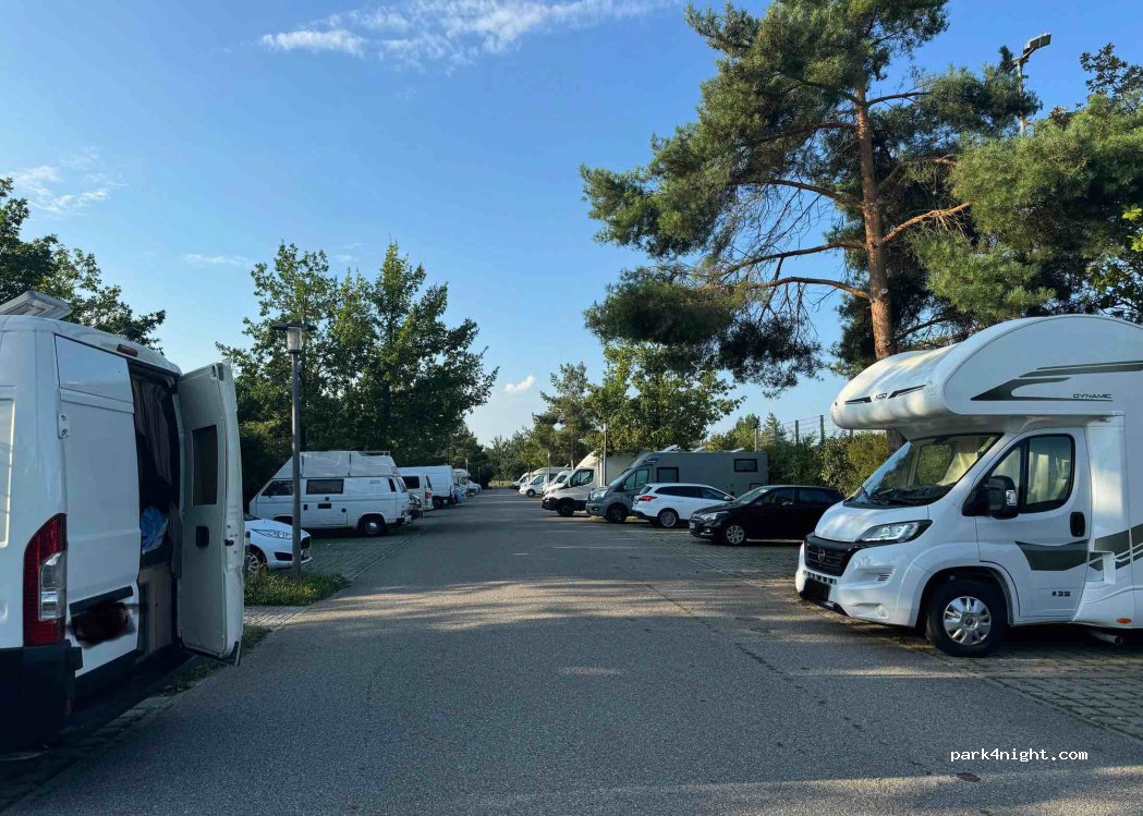 Zeer goede plaats om te overnachten in München. Gratis en op wandelafstand van een mooi meer waar je kan zwemmen en de metro. Vlak aan de parking van Oktoberfest. (Wij waren hier voor Adele)