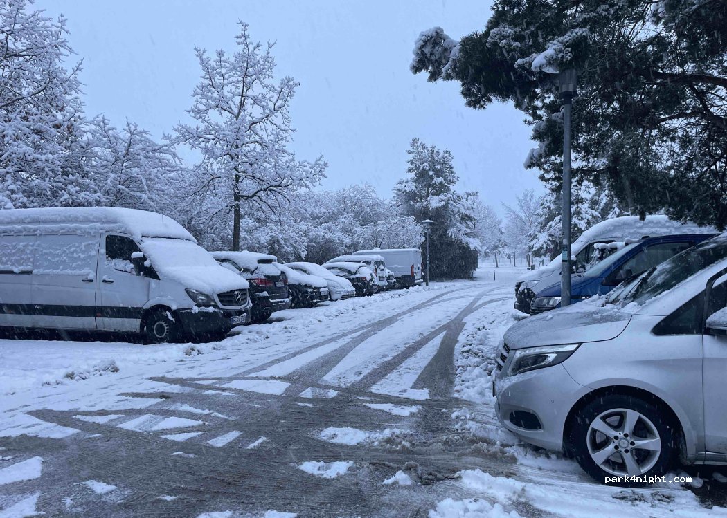 Sostato qui per la fiera, la mattina passano a dare una multa perché la notte non si può sostare nel parcheggio. Nessun cartello è oltretutto poco fondato passando solo la mattina! Prima indicano 50€, poi perché siamo italiani diventano 120€! Parcheggi camper inesistenti o pieni, organizzazione della città pessima!