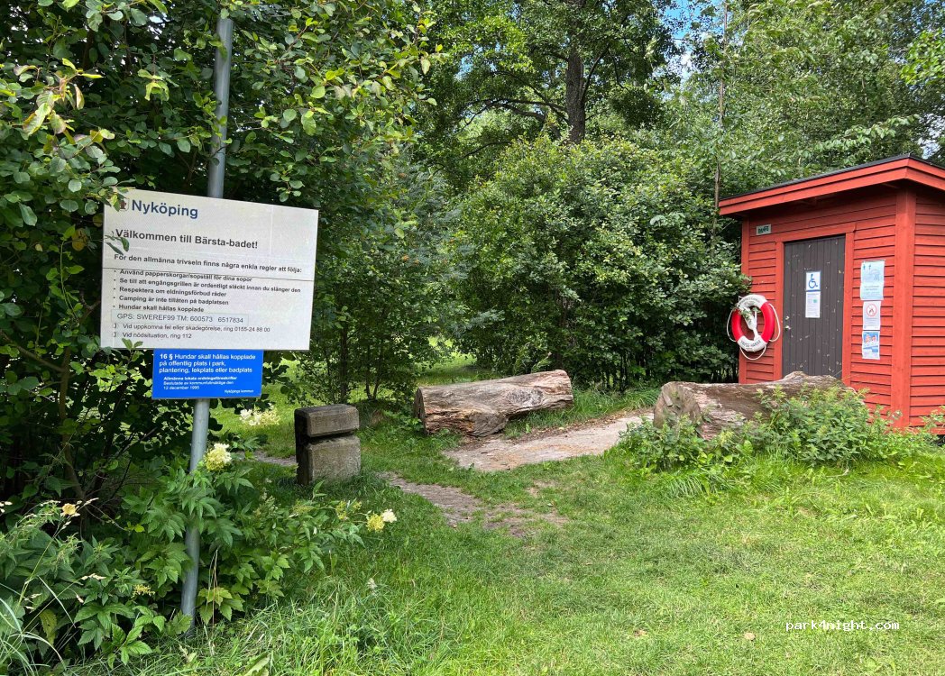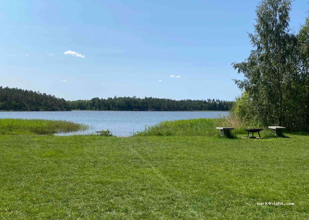 Parkplatz einer Badestelle, nichts besonderes. Wiese mit Picknicktischen, Schaukel und Seezugang. ! Achtung: Im See sollte nicht gebadet werden, Blaualgen- Befall. Am Toilettenhäuschen hängen auch Hinweise auf Schwedisch aus.