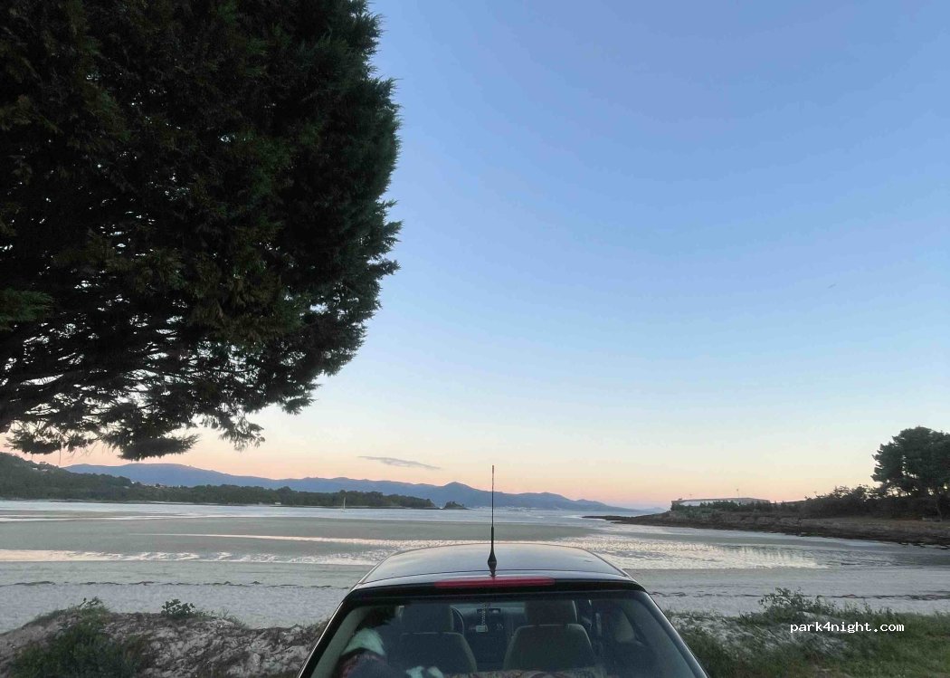 Grass and sand parking right in front of the beach with shower, 5 parking spot. A big tree provides some shade. Arrive late after 9pm on sunny days to find some space.