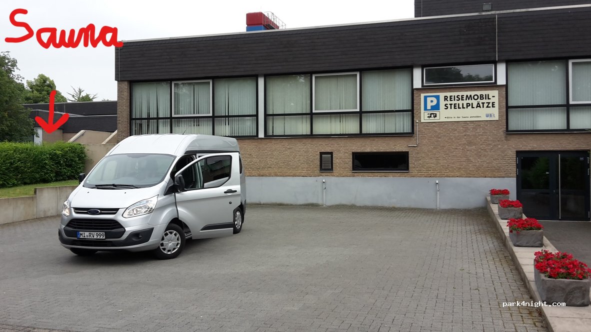 Zur Zeit kostenlos (die Sauna gibt es nicht mehr). Nur ein paar hundert Meter vom Zentrum entfernt. Wenn keine Veranstaltungen in der Stadthalle sind, müsste es ruhig bleiben. Ist zwar nur ein Parkplatz, ohne Strom usw., aber für kostenlos in Ordnung!