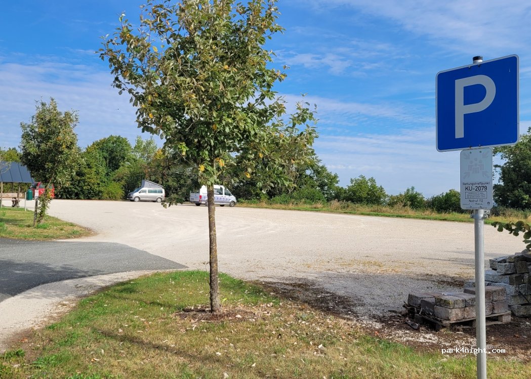 Parkplatz ohne Verbot.Ebener Schotterplatz genutzt von Drachenfliegern.