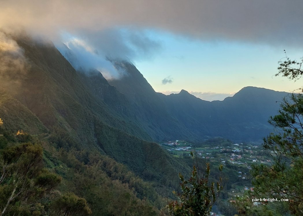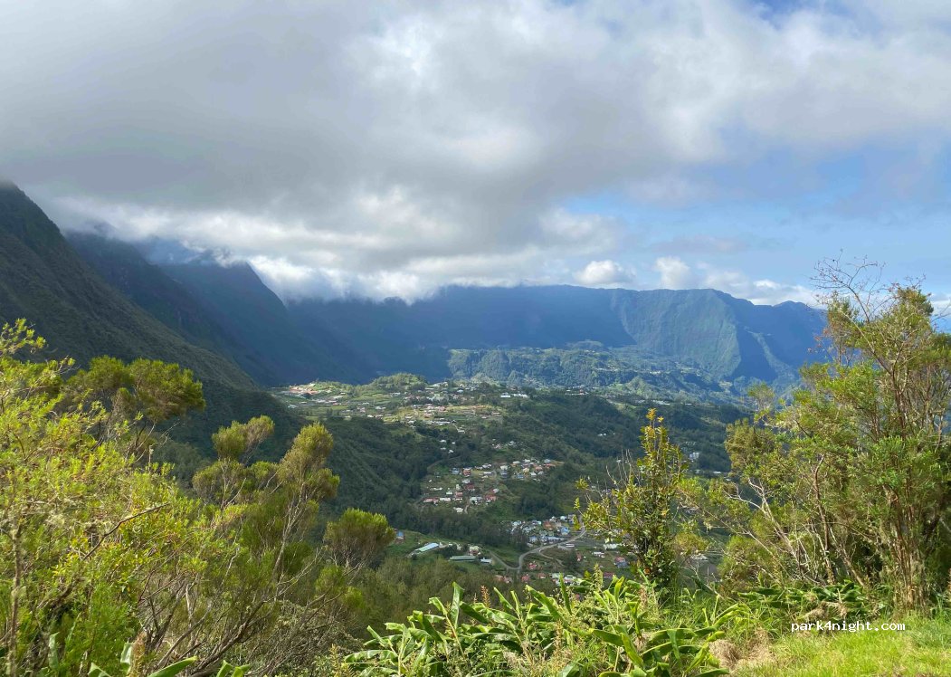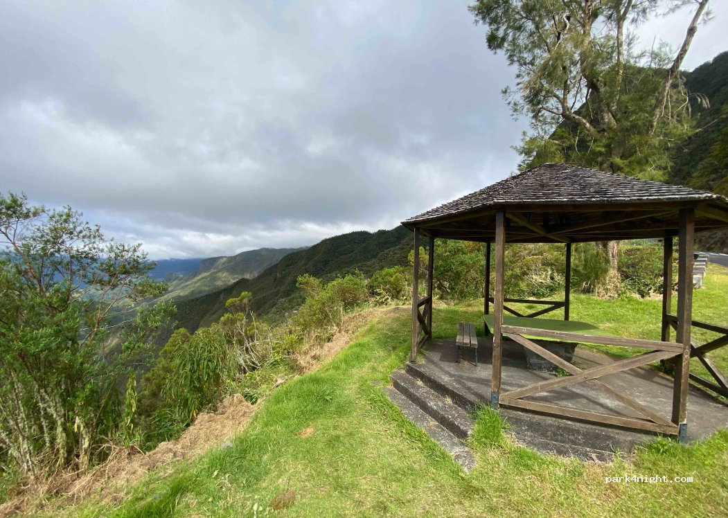 Zona de picnic con quiosco y vistas impresionantes al circo de Salazie.