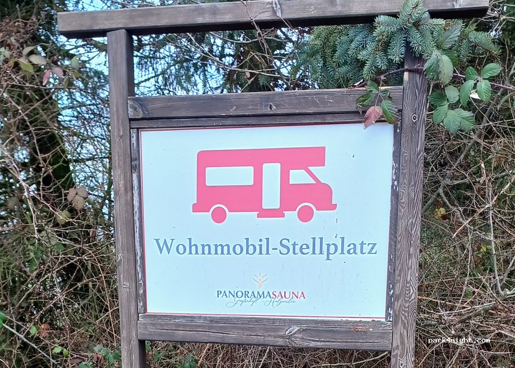 Large parking lot of the Panorama Sauna Holzweiler. Hillside but still passable. Also for larger vehicles. Access via narrow paved driveway. Large sauna facility. Relatively close to the A 61. Quiet location at the edge of the forest.