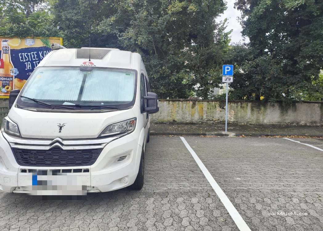2 parking spaces for motorhomes in a municipal car park. There are no signs prohibiting overnight parking. First 45 minutes and Sundays free. A few minutes walk from the centre.