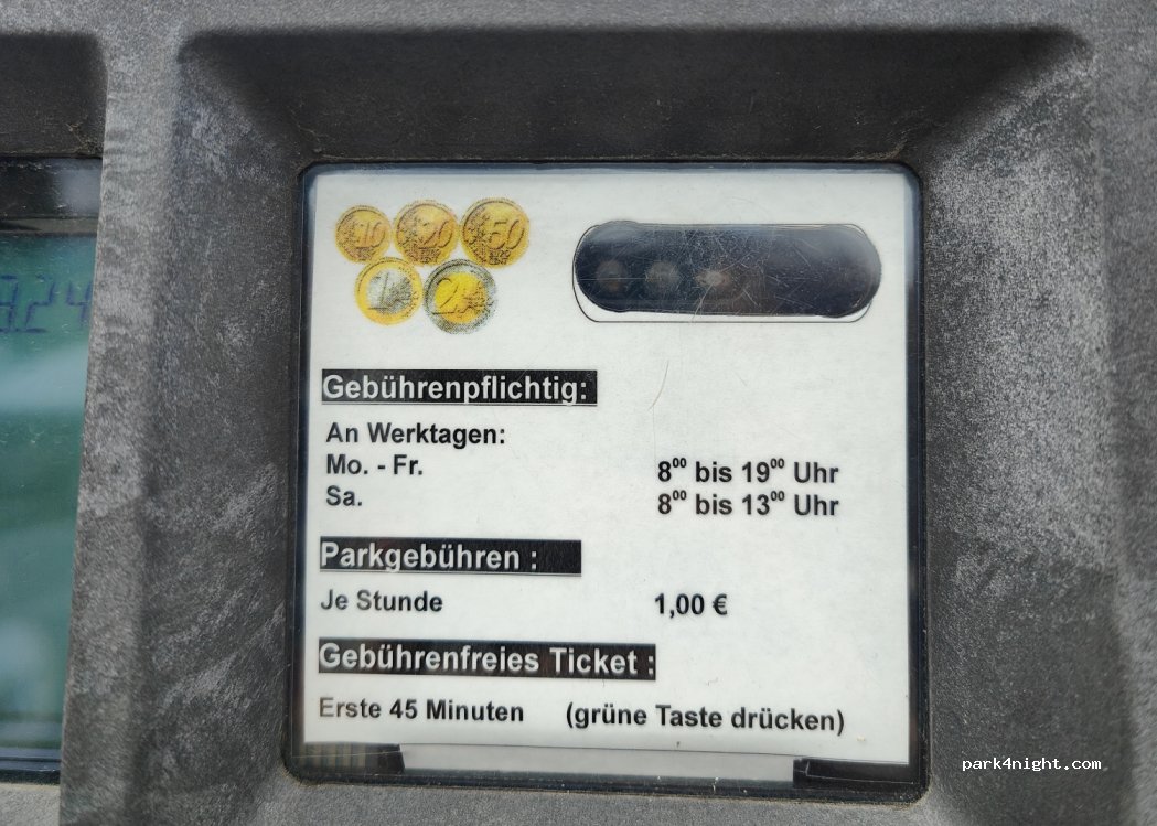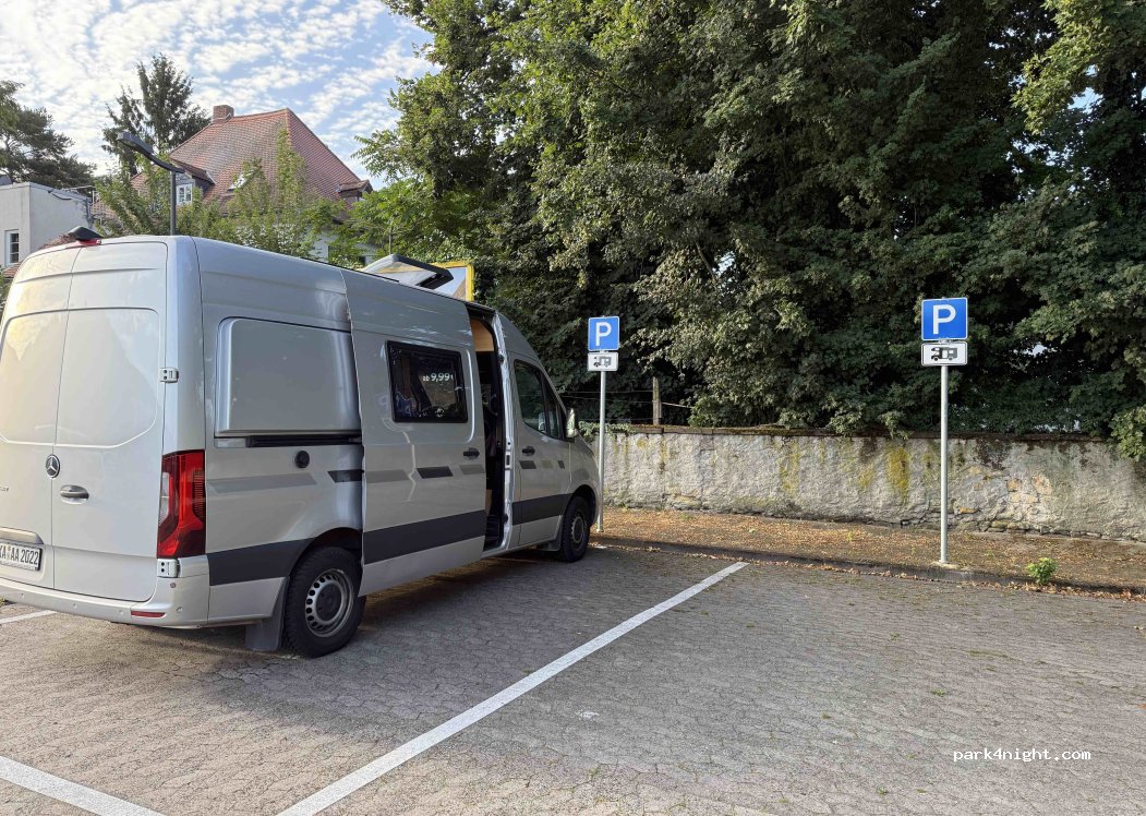 Eben, sauber, nachts ruhig. 2 richtig große breite u lange Plätze, einer auch für Liner. Grossparkplatz, am FrSa bis Mitternacht laute Ausgehleute die Türenschlagen. Von 18:15-8:45 gratis, tags 1 € pro Std. Cash oder essypark 2 Bäcker ganz Nah 5:30. Innenstadt um die Ecke. Zentraler geht nicht da Fussgängerzone!