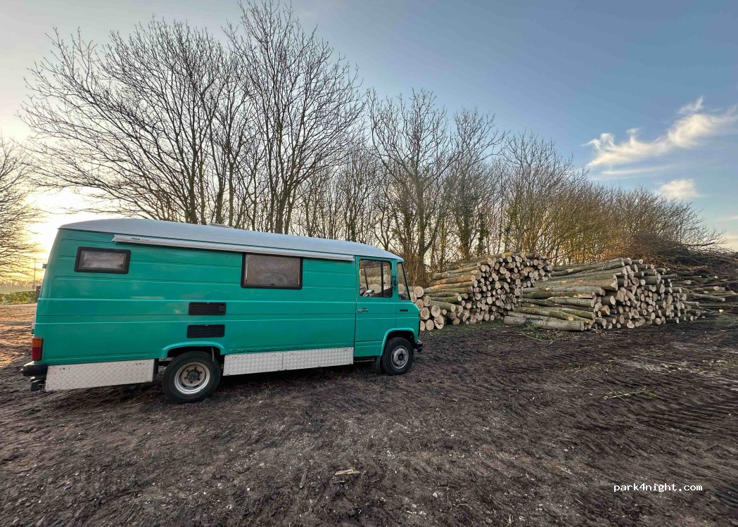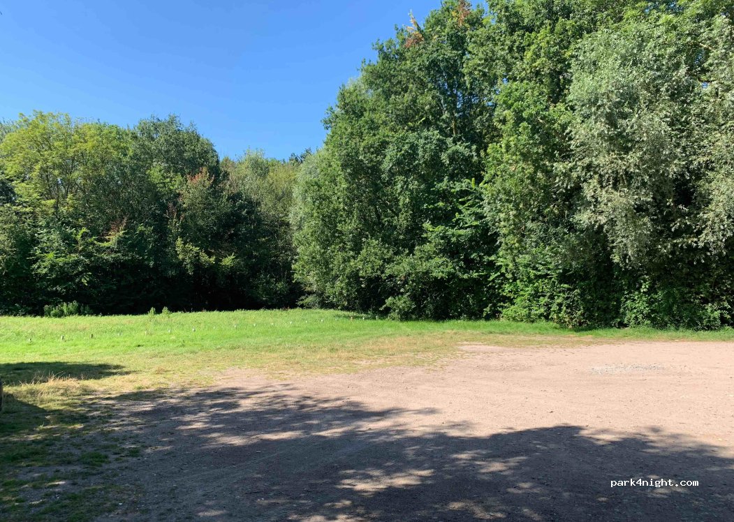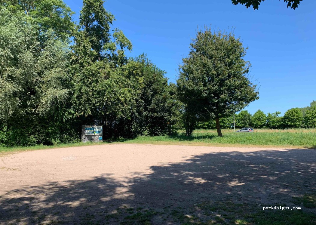 Estacionamiento de grava y césped, a la sombra al mediodía, ¡ideal para un picnic! Un poco ruidoso, sin embargo, debido a la carretera que pasa al lado, pero no pudimos encontrar un lugar mejor para detenernos en la zona.
