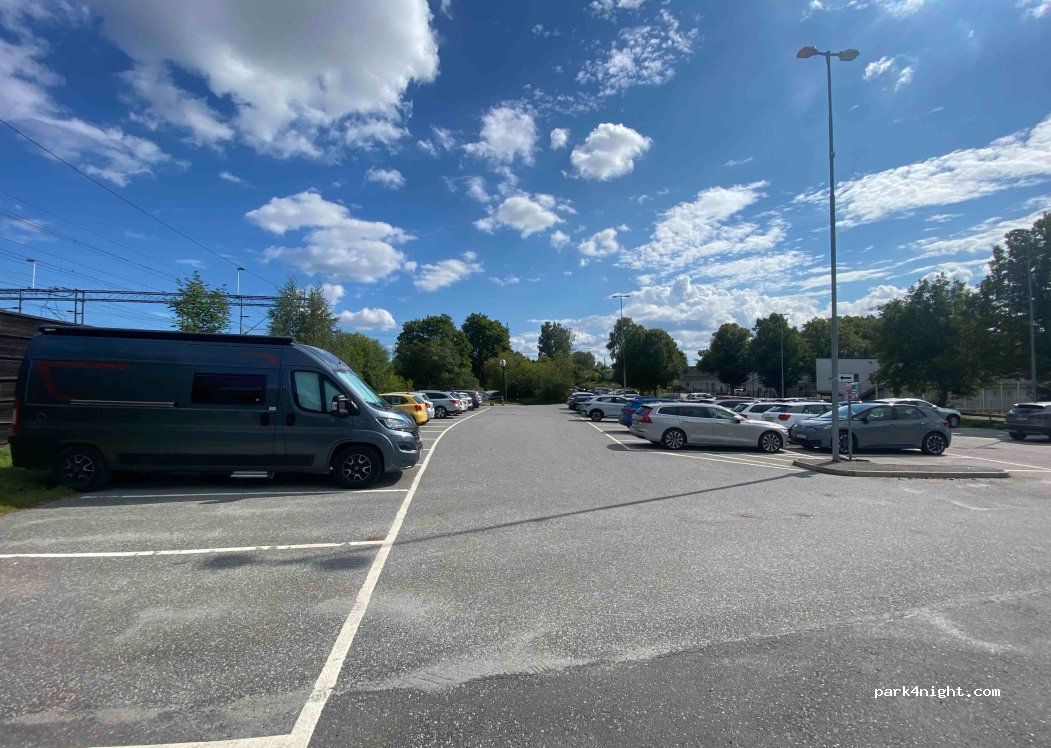 Great starting point for a day trip to Stockholm. Park+Ride directly by train to the center (approx. 15 minutes). Large parking lot for cars and larger camper vans (up to 6m). Payment via app