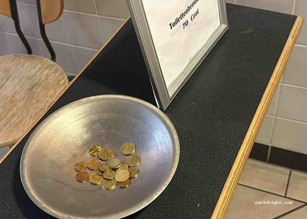 Rastplatz mit guten Parkmöglichkeiten. Toiletten sind auf dem Rastplatz 24 Stunden am Tag gegen Gebühr geöffnet. Duschen ebenfalls kostenpflichtig.