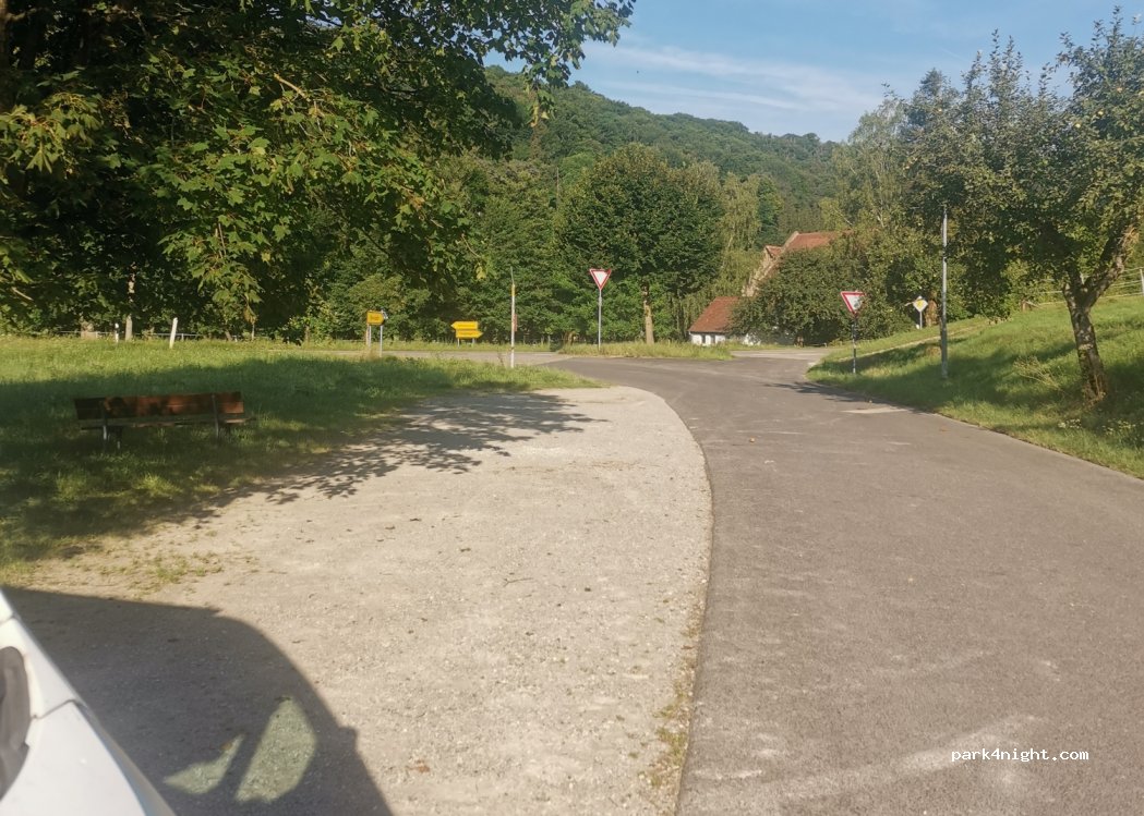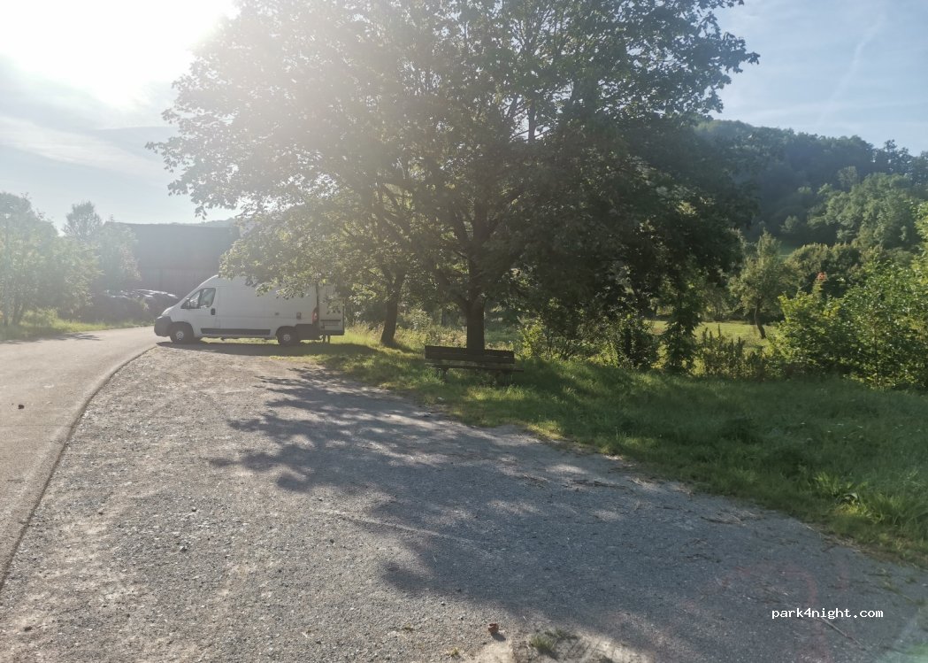Spot sur une place d’arrêt de bus mais nous y étions en pleine vacances scolaires. 3 maisons à côté. Un riverain nous a dit que nous pouvions y passer la nuit. Le matin réveil à 7h par un camion qui déposait du matériel. Mauvais timing pour nous car je pense qu’en principe le coin est très calme. Piste cyclable pour aller à Rothenburg.