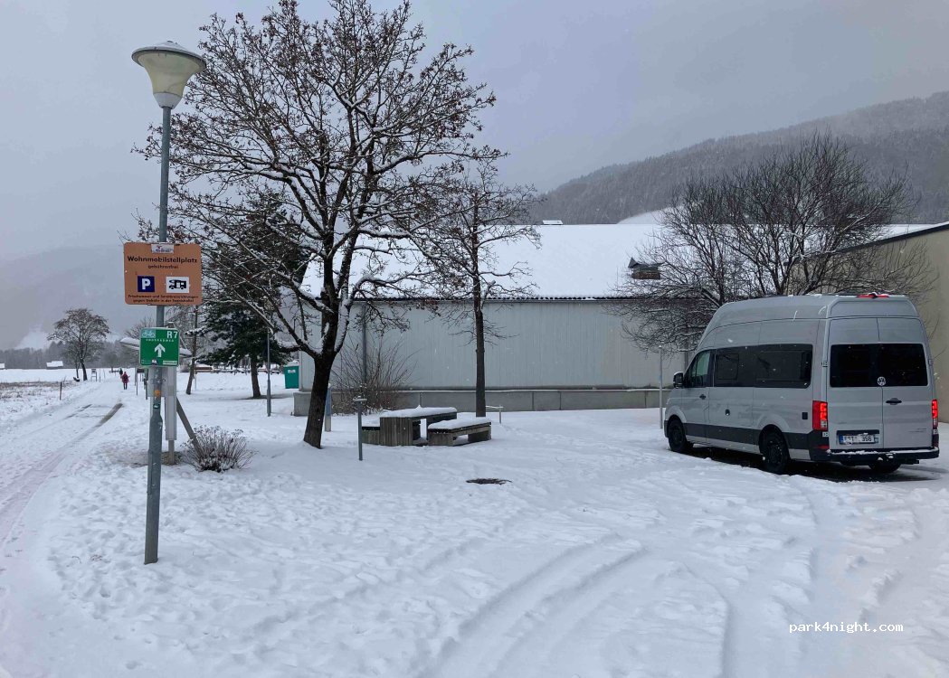 We had a great night at -11 grades! Quiet spot, next to a climbing centre, we were alone but slept perfectly. Area full of trail for hiking or running. Ideal for dogs. Plenty of snow in december. We used it on our way from Graz to Hallstatt. The only thing is it doesn't have camper facilities to empty portable wc