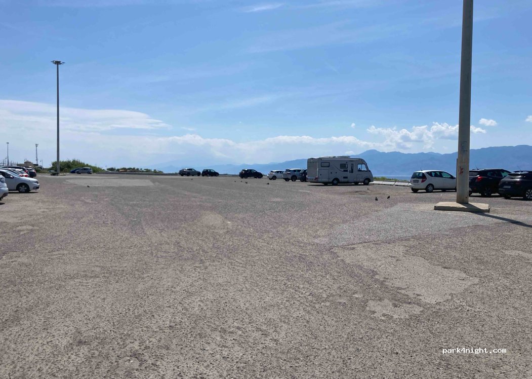 Parcheggio molto grande abbiamo passato la notte tranquilli anche se fino a tardi c'è' stato un via vai di macchine, peccato per la sporcizia e i topi che ci sguazzano. Utile per visitare il museo che dista un 1,5 km percorrendo il bellissimo lungomare di Reggio Calabria. Consigliato.