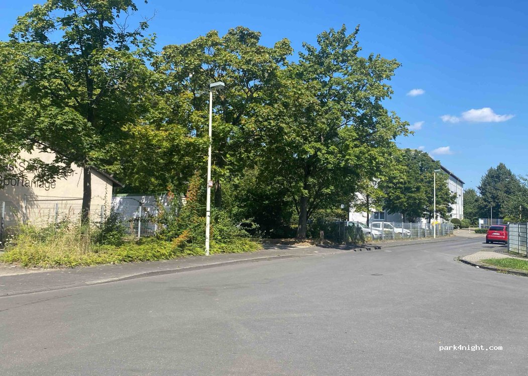 Parking in front of a nursery, with a 7m camper; not recommended during nursery opening. Quiet place next to the pedestrian area that reaches the bus stop for line 18 to the center of Bonn. Next to it there is another large parking lot for vehicles under 5 meters