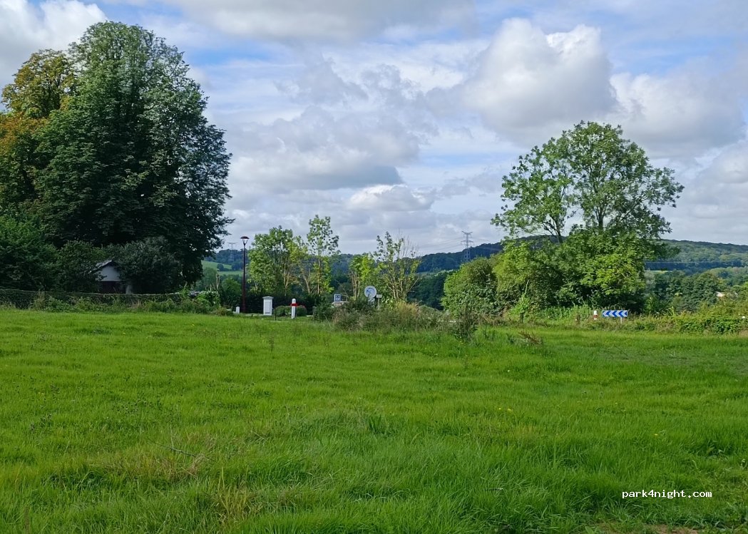 Sehr viel Platz, ruhig in der Nacht, etwas Verkehr am Morgen zu hören, verkehrsgünstig an der Strecke Reims - Belgien, bei der Auffahrt mit langem Womo aufpassen