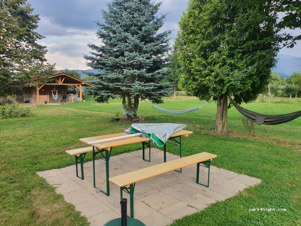 Zelo lep prostor. Kar se tiče storitev, pa ni vse tako kot piše. Kotiček s kuhinjo in žarom je še v delu, pomivanje posode še ni možno. Vprašali smo za tuš in stranišče, a nam le tega niso pokazali, le rekli so, da je na voljo v hiši. Ker smo imeli kamper samo zadeve uredili v kamperju. Izpusta za sivo in črno vodo nam niso pokazali, tudi videli ga nismo.