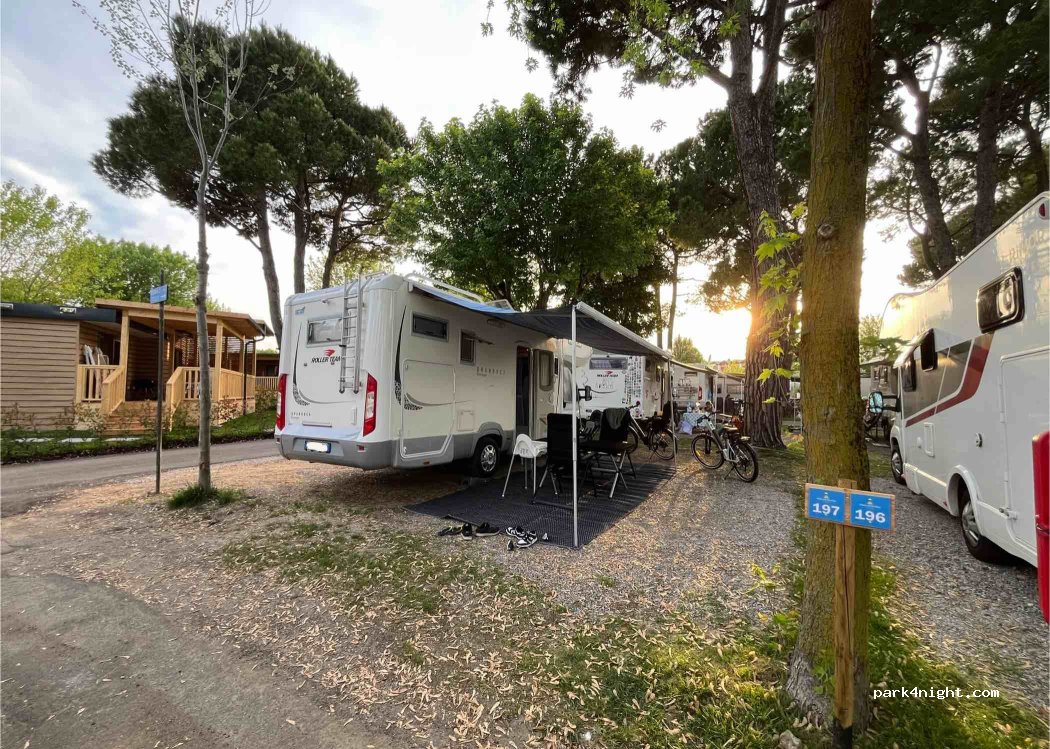 This is my favourite camping. Toilets and showers very clean, tennis courts, playgrounds, some outdoor pools, restourant, you can also rent a bike here. We paid 38eur per night: camper, 2 adults and a kid (1.5 years old). Super.
