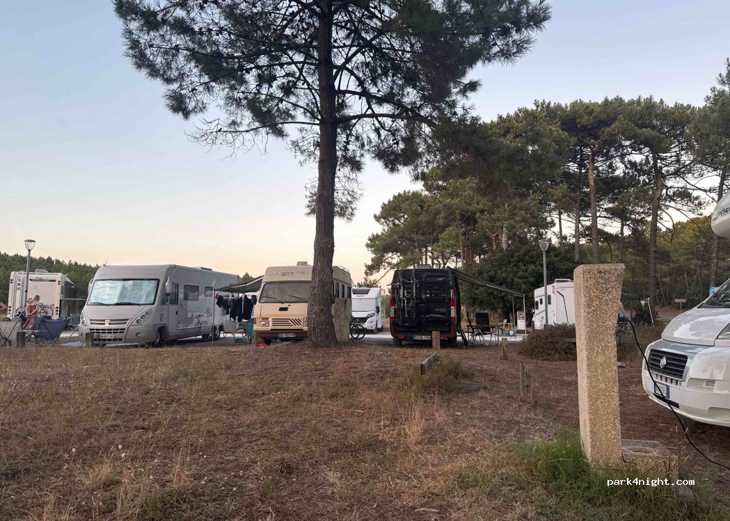 Très belle aire dans les pins avec services et électricité . Il faudrait revoir les évacuations eaux grises et noires car elles se bouchent régulièrement et profiter des travaux sur l’autre aire pour y remédier. Une belle piste cyclable à proximité. Tarif 15,50 par jour. Nous avons passé 3 jours sur cette aire. Merci à la municipale.