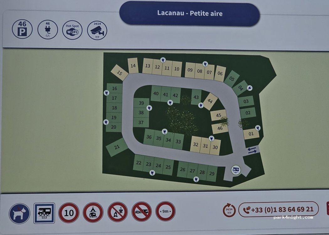 Emplacement plus grand que sur la grande aire, proche des pistes cyclables pour visiter en vélo, aire propre et calme sauf quand l’hélicoptère décolle ou que les éboueurs passent très tôt le matin sinon on reviendra c’est sympas Lacanau