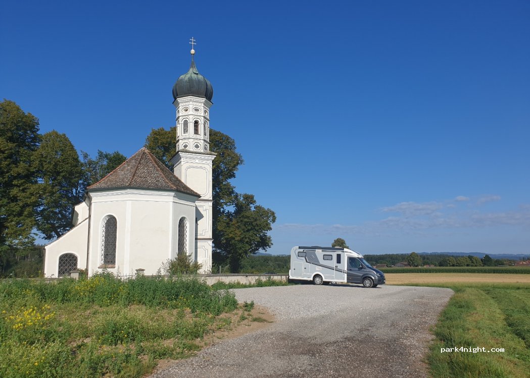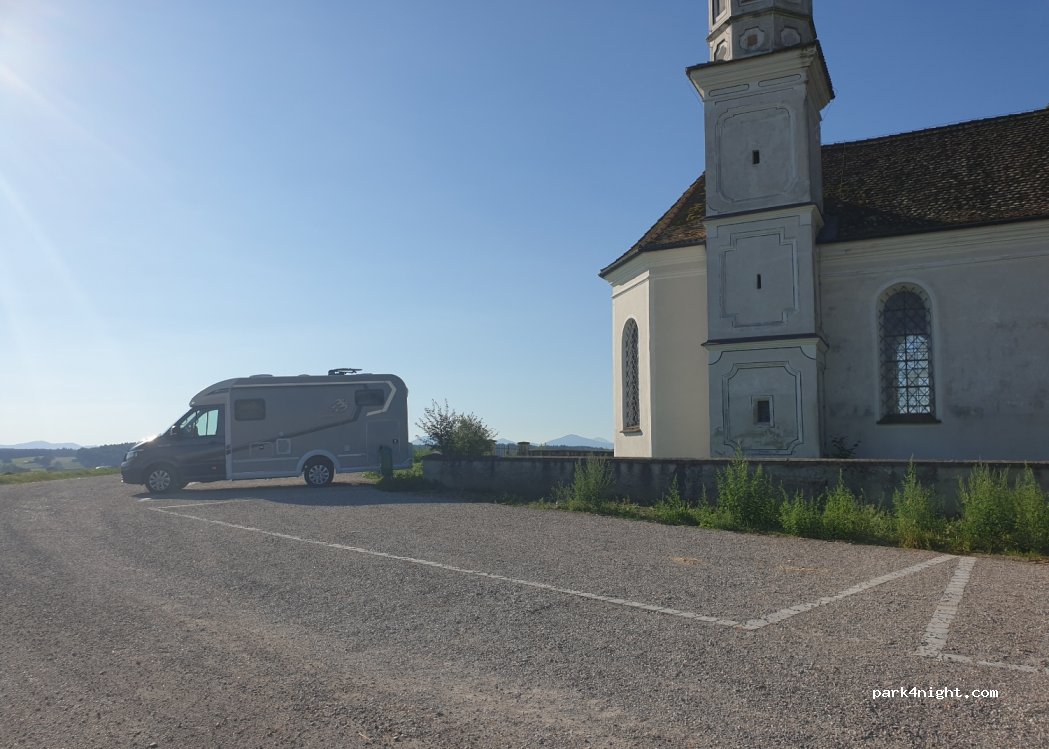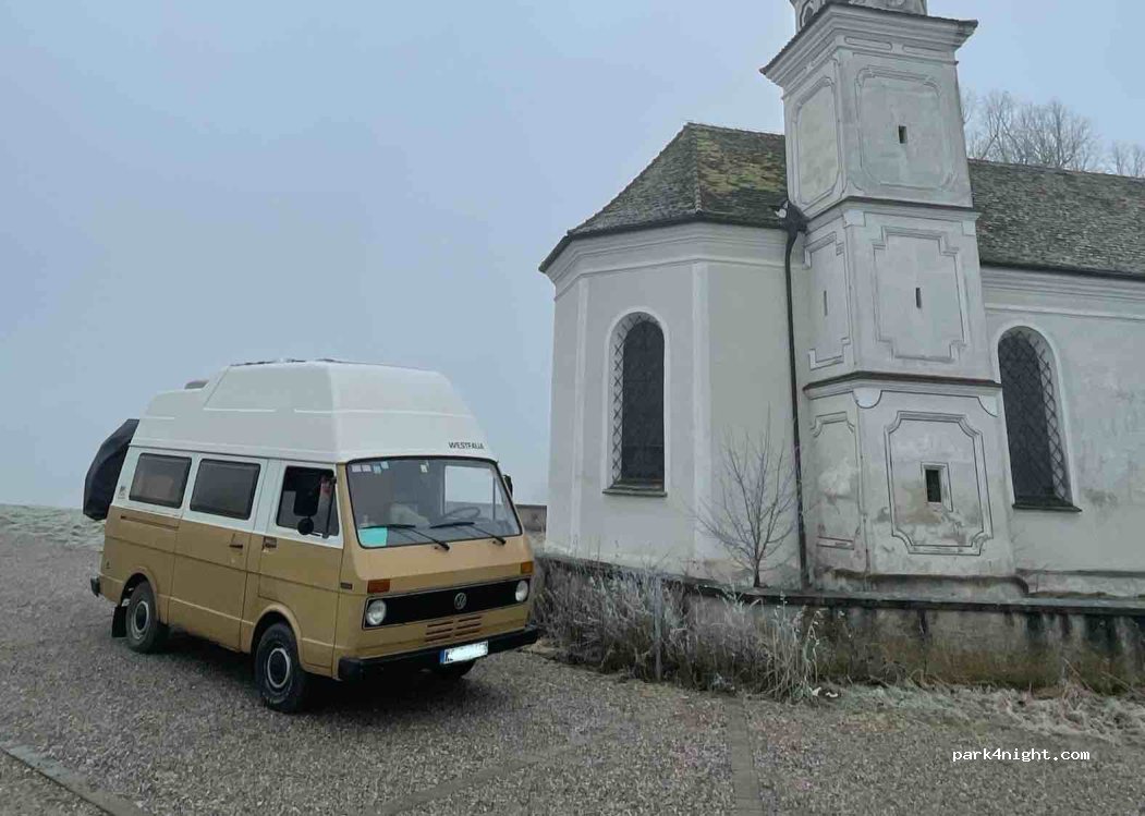 Parkplatz vor der St. Andrä Kirche. Schöne Aussicht drum herum. Parken Tag und Nacht kostenlos. Einen Punkt Abzug wegen etwas Straßenlärm von der Landstraße, welche 100 Meter entfernt liegt.