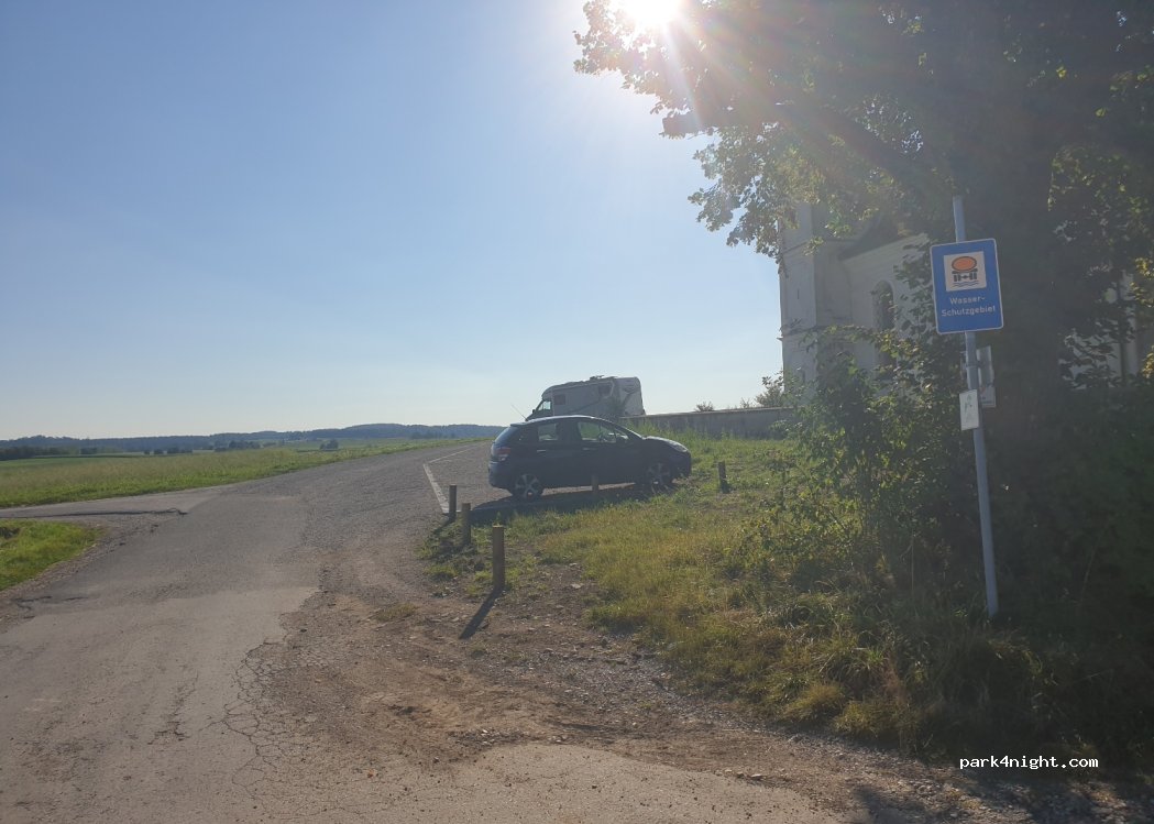 Parking devant l'église Saint-Andrä. Belle vue autour. Parking gratuit jour et nuit. Un point déduit en raison du bruit de la route de campagne qui se trouve à 100 mètres.