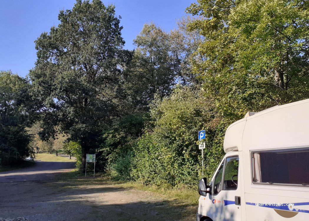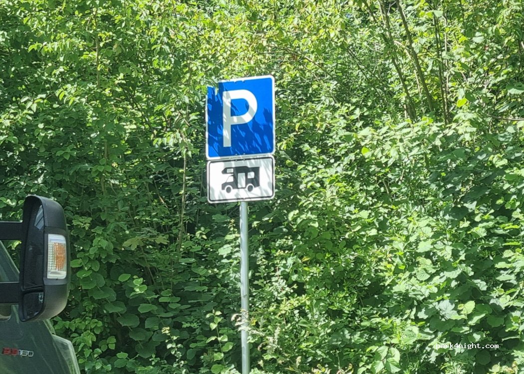 Stellplatz an einem Freibad auf einem eigenen ausgewiesen Parkplatz. Abseits des Besucherstroms des Freibades.