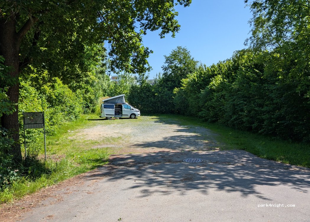Waren für eine Nacht hier. Super ruhiger Stellplatz, durch Hecken von der Straße und dem Rad-/ Fußweg abgegrenzt. Ein Mülleimer befindet sich direkt hinter der Hecke am Fuß-/Radweg, also räumt bitte euren Müll weg und lasst ihn nicht einfach irgendwo liegen!