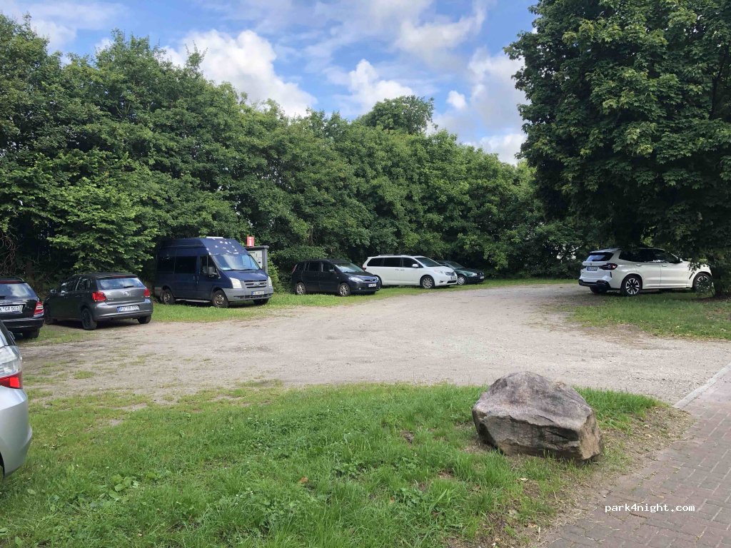 Kleiner Parkplatz an ruhiger Straße. Hier parken die Anwohner, daher max. 3 Plätze für kleine Camper bis 6,5 m. Kurzer Weg zum See mit einem lauschigen Plätzchen. Nächster Bäcker 2 km. Perfekt für eine Zwischenübernachtung.