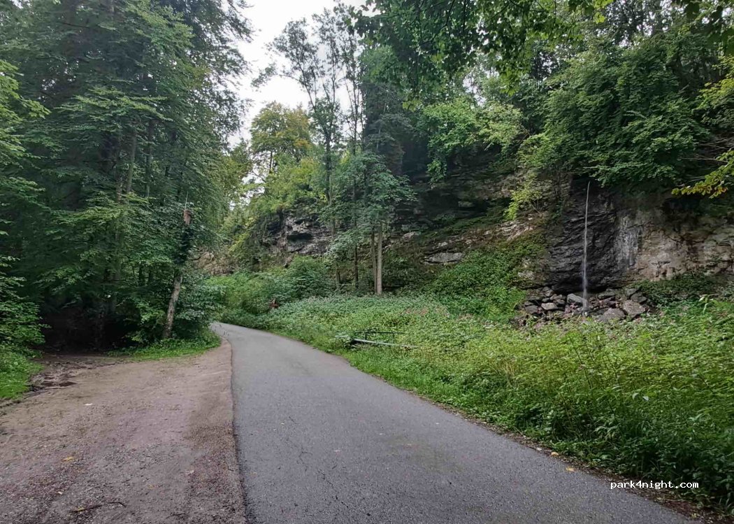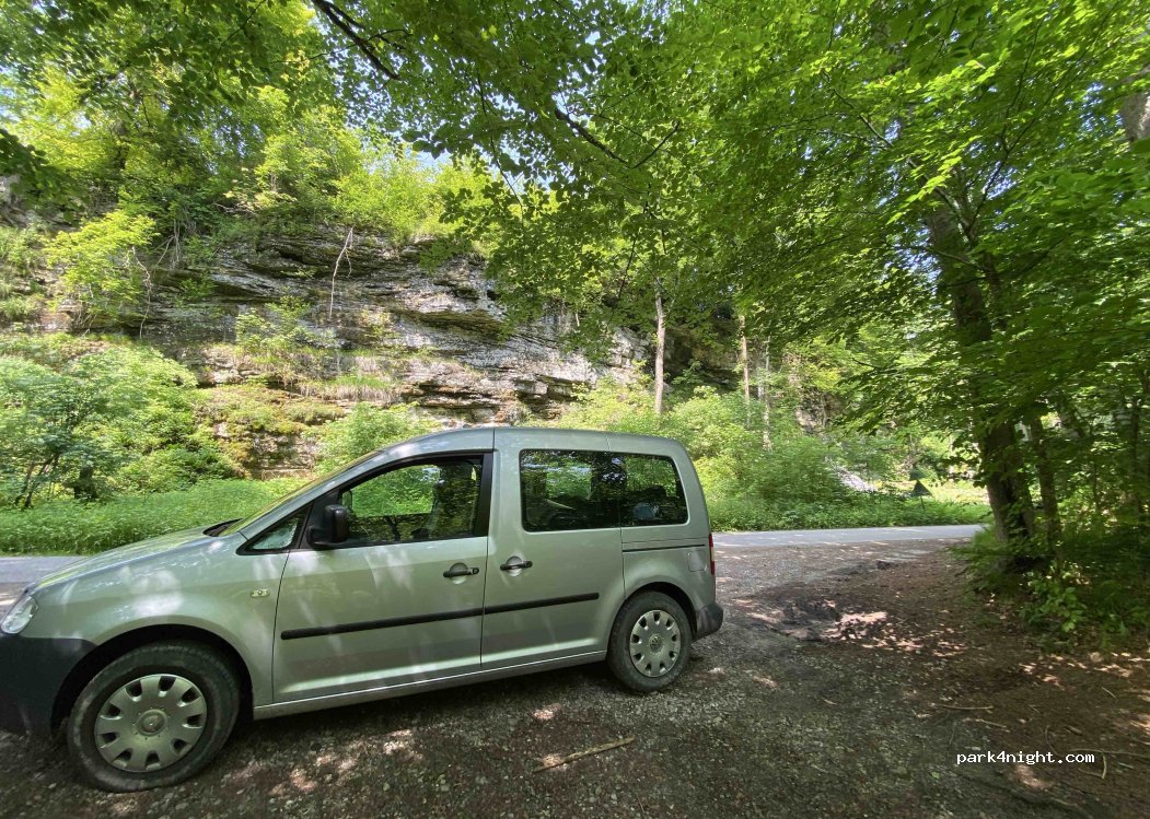 Sehr schöner Parkplatz mitten im Wald neben dem Fluss. Es gibt zwei Parkplätze, die etwa 100 Meter voneinander entfernt sind. Wenn der erste voll ist, versuchen Sie es auf dem zweiten.