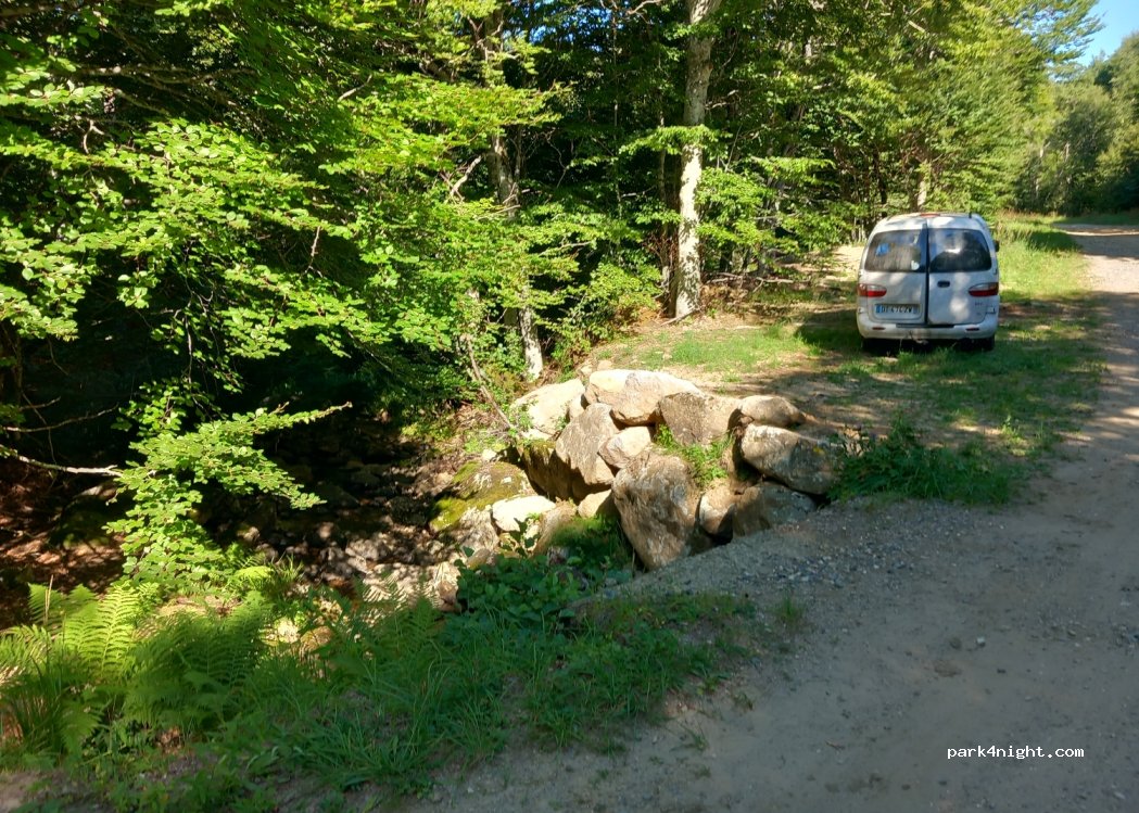 Une place pour un van ou camion au bord d'un ruisseau depart randonnée pour la cascade du saltou. route difficile d'acces car beaucoup de pierre.