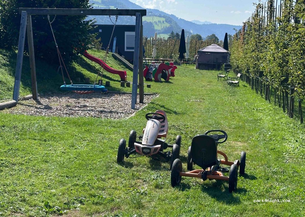 Sehr schöner Platz für ca 10-15 Camper. Wer auf der Grünfläche keinen Platz mehr findet, durfte auch entlang des Zaunes parken. Kostenlos Strom. Kleiner Spielplatz in den Apfelplantagen. Wir haben die Autobahn etwas gehört. Empfehlenswerter Hofladen. Mit den Rädern ist man schnell in Bregenz.